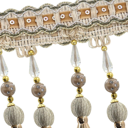 3yards Beading Fringe Trimming Long Beads Tassel Curtain Trim Ribbon Trim for Cover Edge Decorative (beige)