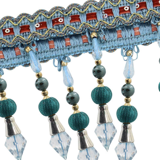 3yards Beading Fringe Trimming Long Beads Tassel Curtain Trim Ribbon Trim for Cover Edge Decorative (blue)