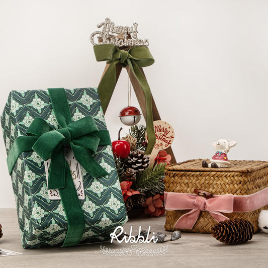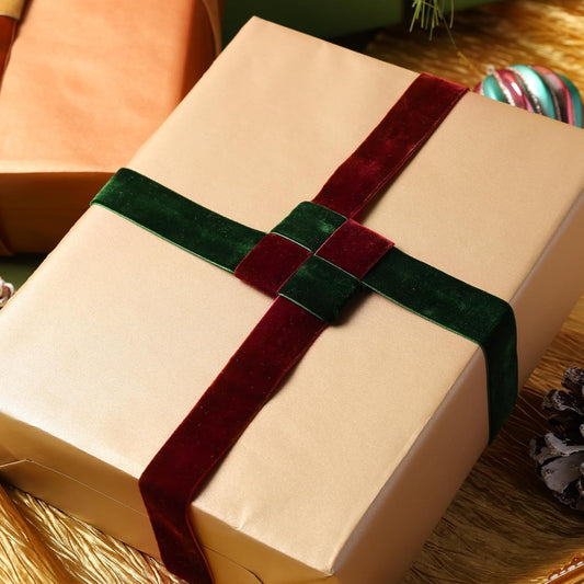 Ribbli Dark Green Velvet Ribbon 1 Inches Continuous10 Yard Spool Red Christmas Ribbon for Gift Wrapping Crafts Home Decor
