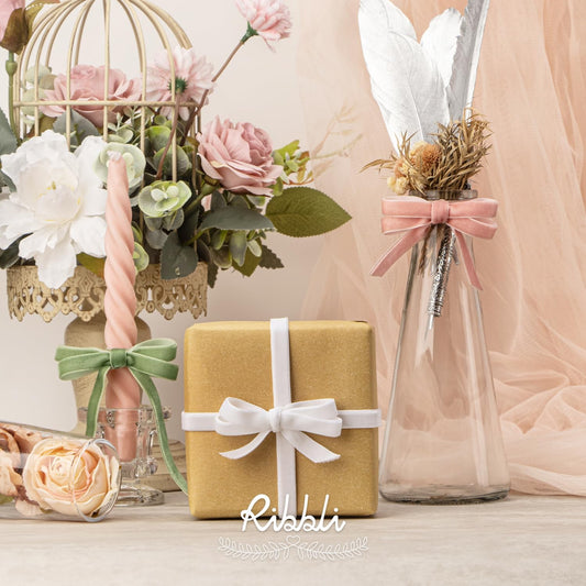 Ribbli Polyester White Velvet Ribbon,3/8 Inches Continuous10-Yard Spool,Christmas Ribbon for Gift Wrapping,Floral Bouquets, Home Decor