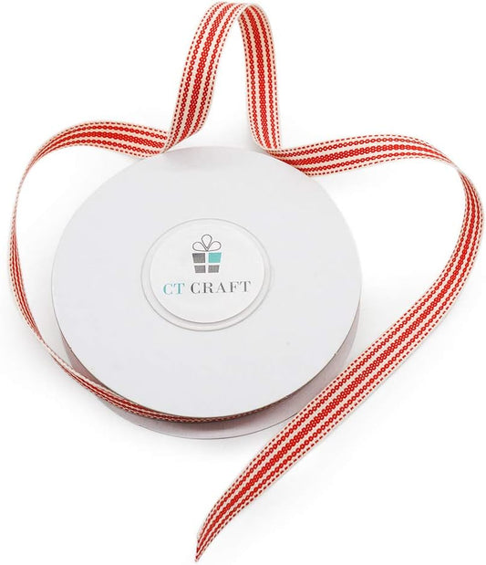 CT CRAFT LLC Ivory Cotton Red Stripes Ribbon 3/8" x 10 Yards for Home Décor Gift Present Wrapping DIY Crafts Birthday Wedding Bouquet Christmas