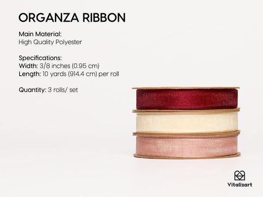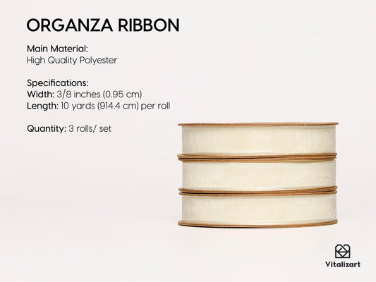 Vitalizart 3/8" x 30Yd Organza Ribbon Cream White Sheer Ribbons Set 10 Yd x 3 Rolls Ivory Handmade Eco-Friendly for Gift Wrapping Christmas Tree Crafts Bows Wedding Invitations Wreaths