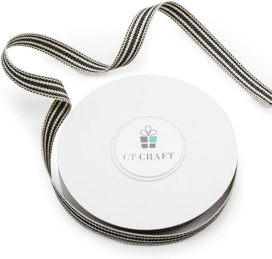 CT CRAFT LLC Ivory Cotton Black Stripes Ribbon 3/8" x 10 Yards for Home Décor Gift Present Wrapping DIY Crafts Birthday Wedding Bouquet Christmas
