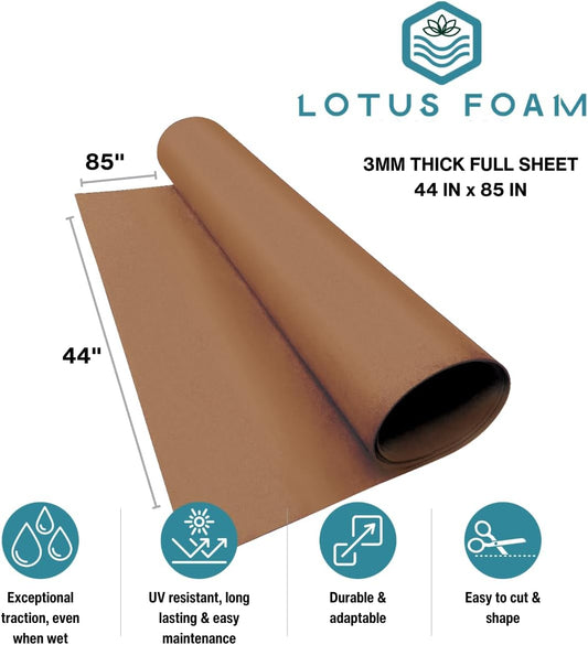 LotusFoam Large 3mm EVA Foam Sheet - 44"x 85" High Density Foam 130 kg/m3 for Cosplay, Costumes, Crafts, Flooring, Outdoor Use - 35 Colors (Pecan) - Pecan