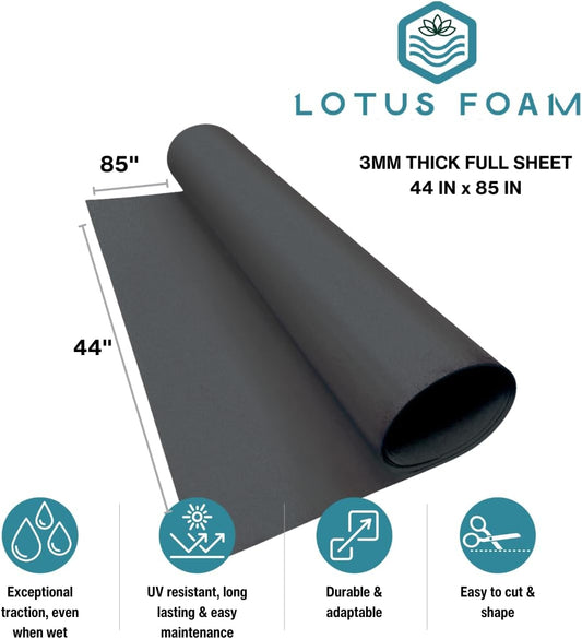 LotusFoam Large 3mm EVA Foam Sheet - 44"x 85" High Density Foam 130 kg/m3 for Cosplay, Costumes, Crafts, Flooring, Outdoor Use - 35 Colors (Dark Grey) - Dark Grey
