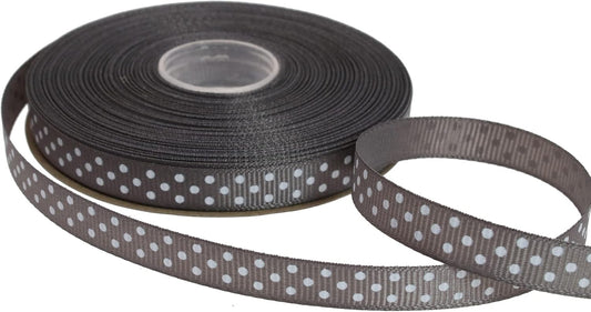 Polka Dot Grosgrain Ribbon 25 Yard Each Roll 100% Polyester (3/8", Gray)