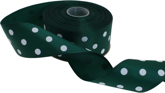 Polka Dot Grosgrain Ribbon 25 Yard Each Roll 100% Polyester (1/1-2", Dark Green)