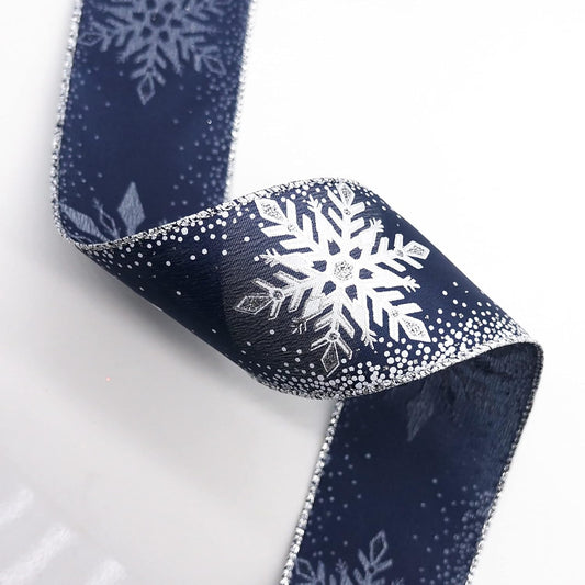CT CRAFT LLC Navy Satin with Silver Snowflake Wired Ribbon 2.5 Inch x 10 Yards for Christmas Home Decor Tree Topper Bow Gift Wrapping DIY Crafts Wreath Garland