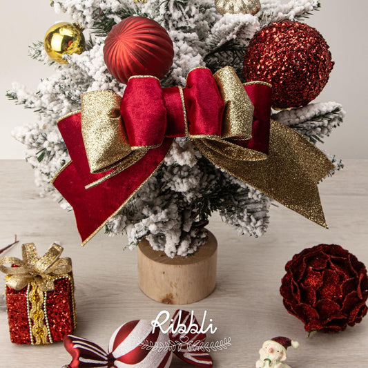 Ribbli Red Velvet Wired Ribbon 2.5 Inch Red Velvet with Gold Glitter Christmas Ribbon for Christmas Tree Decoration Big Bow Gift Wrapping Crafts Wreaths Supplies- 10 Yards
