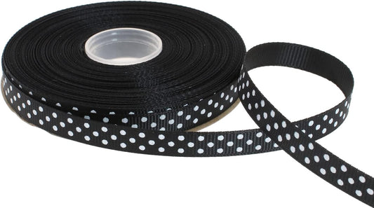 Polka Dot Grosgrain Ribbon 25 Yard Each Roll 100% Polyester (3/8", Black)