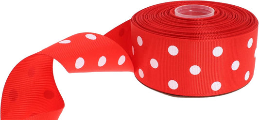 Polka Dot Grosgrain Ribbon 25 Yard Each Roll 100% Polyester (1", Red)
