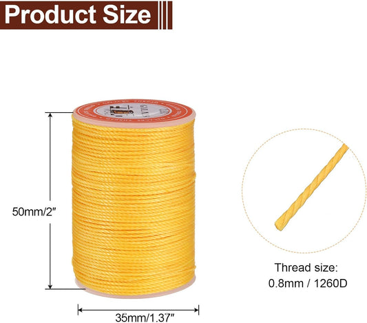 uxcell 150D 0.8mm Flat Waxed Thread 284 Yards Polyester Leather Sewing Waxed String Hand Stitching Cord for Leather Stitching Sewing Bookbinding DIY Craft Golden Yellow