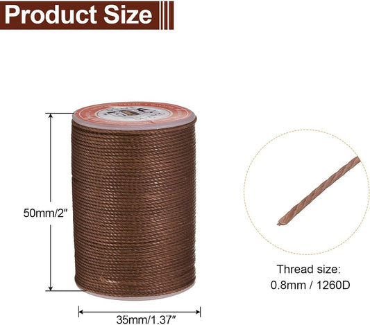 uxcell Round Leather Sewing Waxed Thread, 55m / 60 Yards Wax Polyester String, 0.8mm Waxed Stitching Cord for Leather Crafts, Bookbinding, Bracelets Braided, Coffee Brown