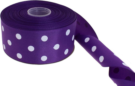 Polka Dot Grosgrain Ribbon 25 Yard Each Roll 100% Polyester (1/1-2", Purple)