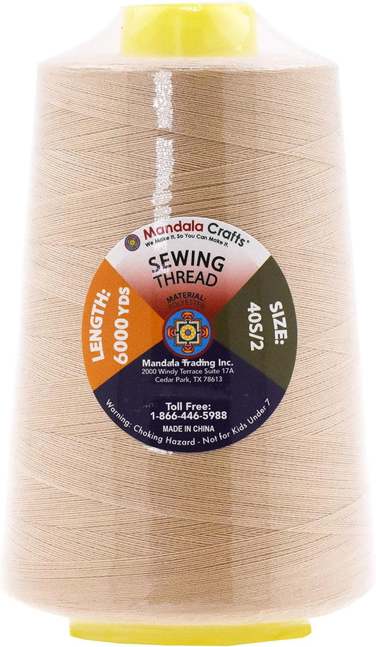 Mandala Crafts 4 Pack of Serger Threads Cones Spools - 40S/2 24000 Yards Polyester Tan Threads for Sergers Machine and Overlock Quilting Sewing Machine