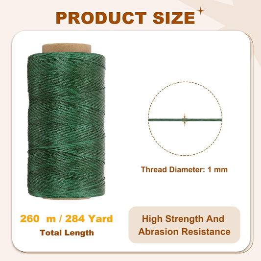 PATIKIL 284 Yard Flat Waxed Thread 150D 1mm Leather Sewing Cord for Repairing Shoes Bags Wallets Jewelry Making DIY Leather Craft, Dark Green