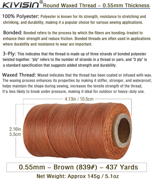 Sturdy Bonded Waxed Polyester Thread, 0.55mm, 437 Yards Wax String Cord - Brown for Leather, Hand Sewing, Stitching, Bookbinding, Beading, Bracelets and Macrame Jewelry Making