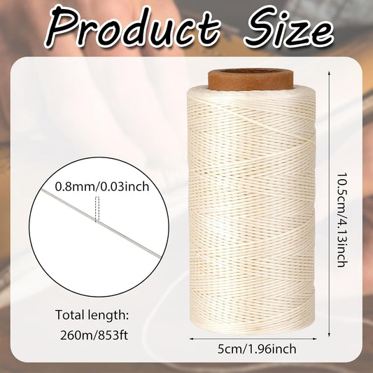 Waxed Linen Thread, 285 Yards 0.8MM 150D Polyester Leather Sewing Waxed Thread for Leather Craft, Bookbinding, Shoe Repair, DIY Projects