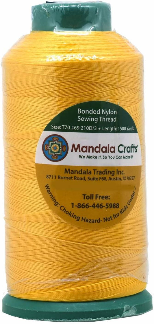 Mandala Crafts Bonded Nylon Thread Yellow Heavy Duty Sewing Threads - 1500 YDs Size 69 210D T70 Tex 70 Thread for Leather Jeans Weaving Outdoor Marine Upholstery Threads