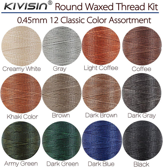 12 Classic Colors Round Waxed Thread, 0.8mm 35Yards Spool Polyester Wax Coated Cord Heavy Duty String for Leather Sewing, Stitching, Bookbinding, Upholstery Repairing and Micro Braiding
