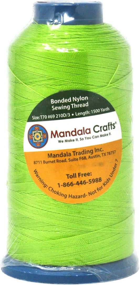 Mandala Crafts Bonded Nylon Thread Lime Green Heavy Duty Sewing Threads - 1500 YDs Size 69 210D T70 Tex 70 Thread for Leather Jeans Weaving Outdoor Marine Upholstery Threads