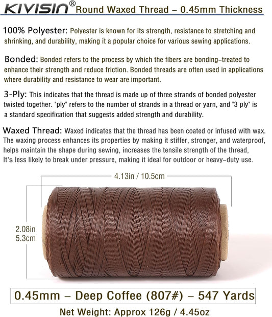 Thin Wax Polyester Thread, 0.45mm, 547 Yards, 3 Ply Round Waxed Cord Strings for Sewing, Beading, Binding, Micro Braiding, Fine Leather Craft and Micro Macrame Jewelry - Deep Coffee