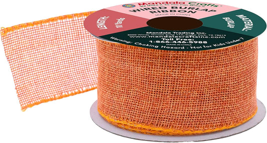Mandala Crafts Orange Burlap Wired Ribbon 2 Inches Wide Jute Ribbons for Crafts - 10 Yds Roll Rustic Burlap Wrap Trim Ribbons for Wreaths Bows Party Decoration