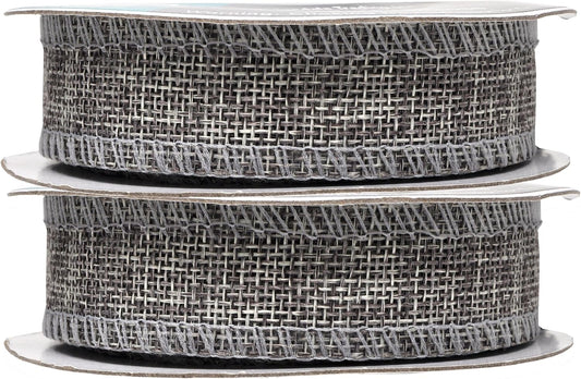 Mandala Crafts Gray Burlap Wired Ribbon 1.5 Inches Wide Jute Ribbons for Crafts - 10 Yds Roll Rustic Burlap Wrap Trim Ribbons for Wreaths Bows Party Decoration