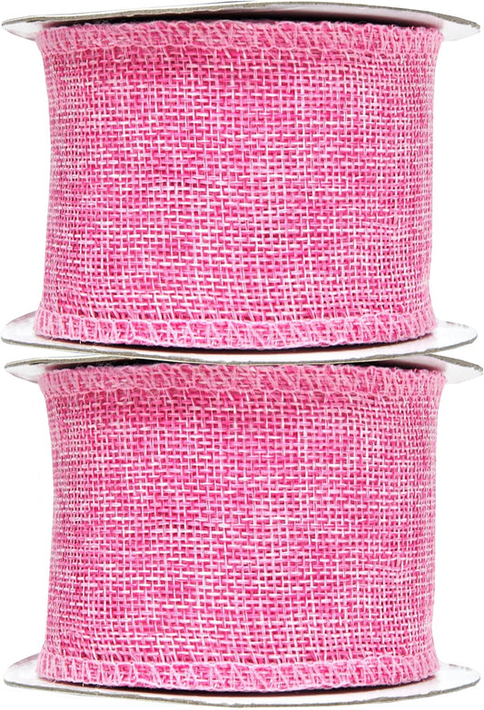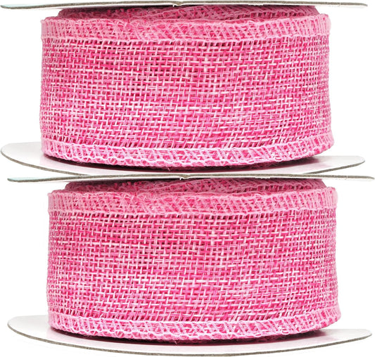 Mandala Crafts Pink Burlap Wired Ribbon 1.5 Inches Wide Jute Ribbons for Crafts - 10 Yds Roll Rustic Burlap Wrap Trim Ribbons for Wreaths Bows Party Decoration