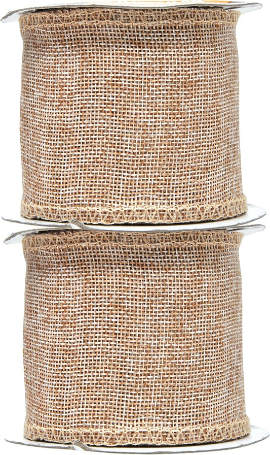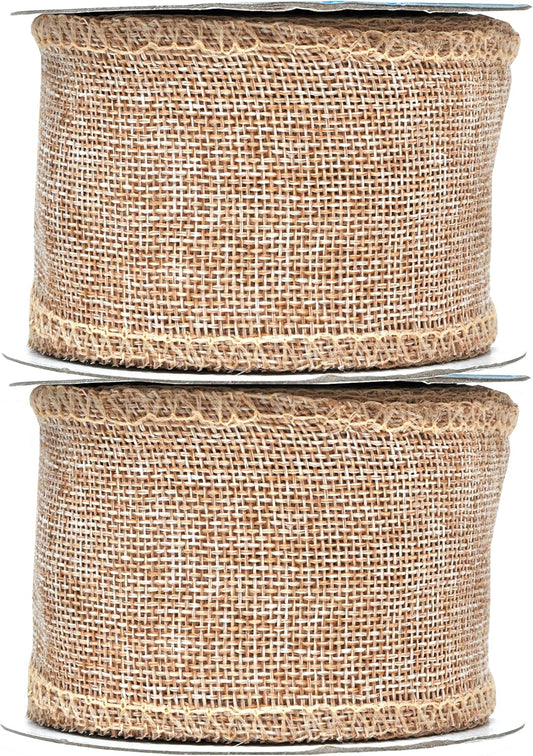 Mandala Crafts White Burlap Wired Ribbon 2 Inches Wide Jute Ribbons for Crafts - 10 Yds Roll Rustic Burlap Wrap Trim Ribbons for Wreaths Bows Party Decoration