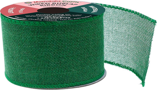 Mandala Crafts Green Burlap Wired Ribbon 2.5 Inches Wide Jute Ribbons for Crafts - 10 Yds Roll Rustic Burlap Wrap Trim Ribbons for Wreaths Bows Party Decoration
