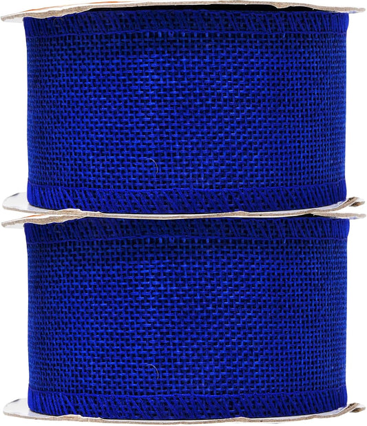 Mandala Crafts Royal Blue Burlap Ribbon 2 Inches Wide Jute Ribbons for Crafts - 20 Yds Roll Rustic Burlap Wrap Trim Ribbons for Wreaths Bows Wedding Party Decoration