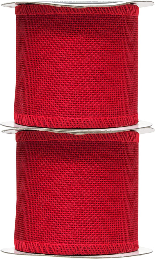 Mandala Crafts Red Burlap Wired Ribbon 2.5 Inches Wide Jute Ribbons for Crafts - 10 Yds Roll Rustic Burlap Wrap Trim Ribbons for Wreaths Bows Party Decoration