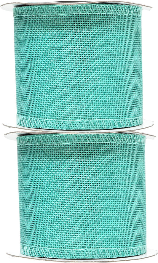 Mandala Crafts Turquoise Burlap Wired Ribbon 3 Inches Wide Jute Ribbons for Crafts - 10 Yds Roll Rustic Burlap Wrap Trim Ribbons for Wreaths Bows Party Decoration