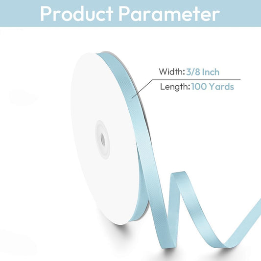 3/8" Width x 100 Yards Satin Ribbon, Small Light Blue Ribbon Perfect for DIY Craft, Bows, Gift Wrapping, Flower Bouquet, Valentine's Day, Christmas and Party Decoration