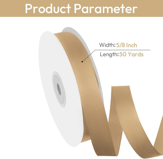 5/8" Width x 50 Yards Satin Fabric Ribbon, Champagne Gold Ribbon Perfect for DIY Bows, Swags, Gift Wrapping, Craft, Flower Bouquet,Christmas and Party Decoration