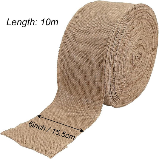 KINJOEK 6 Inch Wide 11 Yards Burlap Ribbon, Natural Jute Fabric Ribbon Crafts Ribbon for Christmas Wedding Gifts Burlap Fabric DIY for Decoration