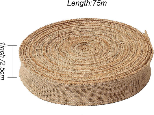 KINJOEK 1 Inch Wide 82 Yards Burlap Ribbon, Natural Jute Fabric Ribbon, Crafts Ribbon for Christmas, Wedding, Gifts, Burlap Fabric DIY, Decoration