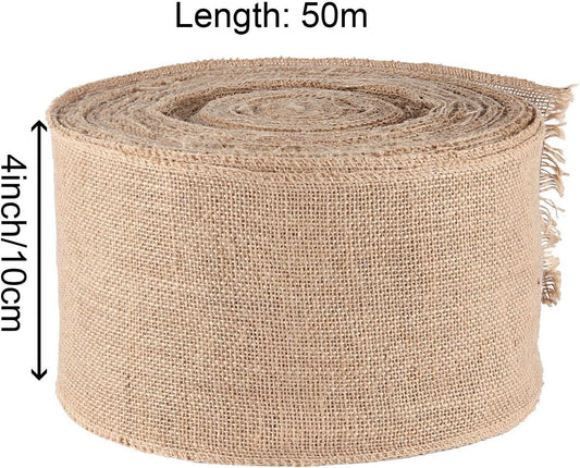 KINJOEK 4 Inch Wide 54 Yards Burlap Ribbon, Natural Jute Fabric Ribbon Crafts Ribbon for Christmas Wedding Gifts Burlap Fabric DIY for Decoration