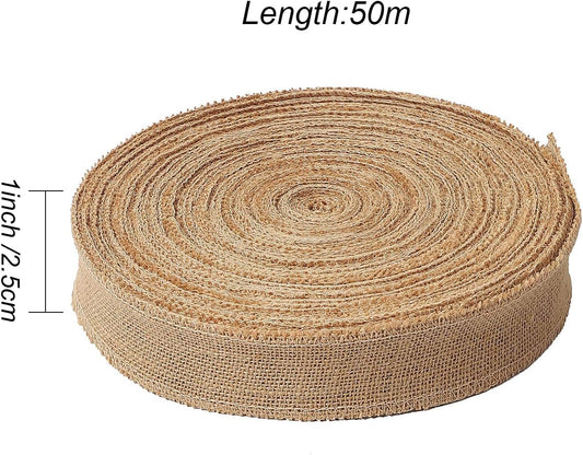 KINJOEK 1 Inch Wide 54 Yards Burlap Ribbon, Natural Jute Fabric Ribbon Crafts Ribbon for Christmas Wedding Gifts Burlap Fabric DIY for Decoration