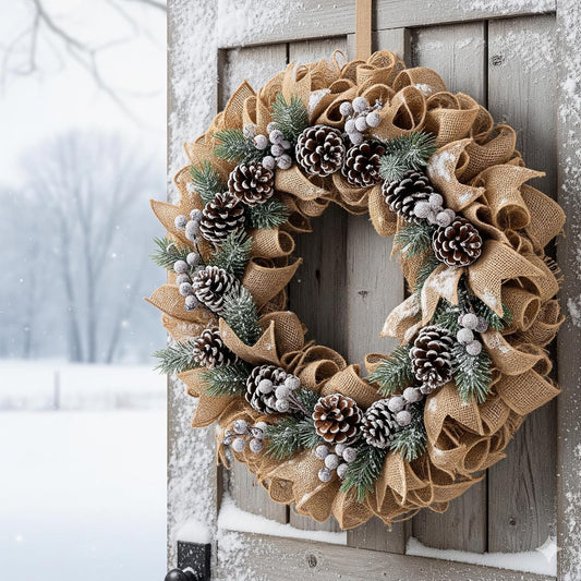 KINJOEK 5 Inch Wide 27 Yards Burlap Ribbon, Natural Jute Fabric Ribbon, Crafts Ribbon for Christmas, Wedding, Gifts, Burlap Fabric DIY, Ribbon for Decoration,