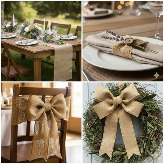 Natural Jute Burlap Ribbon (6" x 30 ft.) - Tight Weave Eco-Friendly Fabric for Crafts, Weddings & Decor