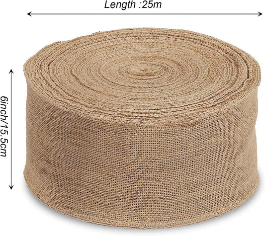 KINJOEK 6 Inch Wide 27 Yards Burlap Ribbon, Natural Jute Fabric Ribbon, Crafts Ribbon for Christmas, Wedding, Gifts, Burlap Fabric DIY for Decoration,
