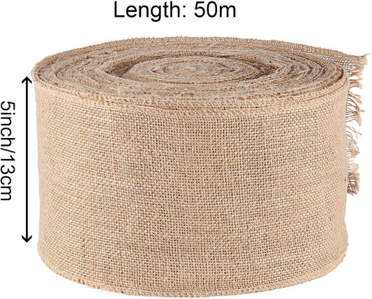 KINJOEK 5 Inch Wide 54 Yards Burlap Ribbon, Natural Jute Fabric Ribbon Crafts Ribbon for Christmas Wedding Gifts Burlap Fabric DIY for Decoration