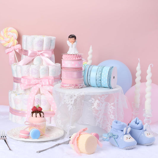 LaRibbons Light Blue Ribbons for Crafts 6 Rolls 28.5 Yards TTL Thin Ribbon for Baby Shower Sewing Gift Wrapping Home Decor