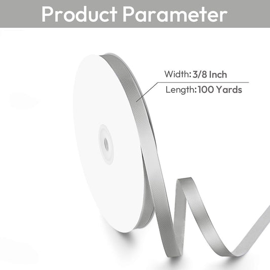3/8" Width x 100 Yards Satin Ribbon, Small Silver Ribbon Perfect for DIY Craft, Bows, Gift Wrapping, Flower Bouquet, Valentine's Day, Christmas and Party Decoration