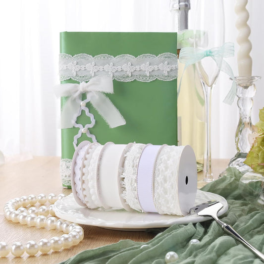 LaRibbons White Ribbons for Crafts 6 Rolls 27.5 Yards TTL Thin Ribbon for Sewing Wedding Gift Wrapping Home Decor