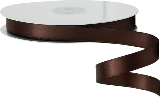 LIUYAXI Brown Satin Ribbon, Double Faced 5/8" X Continuous 25 Yards Ribbons Perfect for Gift Wrapping Bows Bouquet Wedding Craft and More