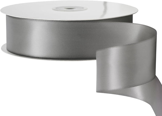 LIUYAXI Silver Double Faced Satin Ribbon, 1" X Continuous 25 Yards, Ribbons Perfect for Gift Wrapping Wedding Bouquet Decor DIY Craft Bow Making & Other Projects