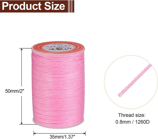 uxcell Round Leather Sewing Waxed Thread, 55m / 60 Yards Polyester Wax String, 0.80mm Wax Stitching Cord for Leather Crafts, Bookbinding, Bracelets Braided, Pink, 2pcs